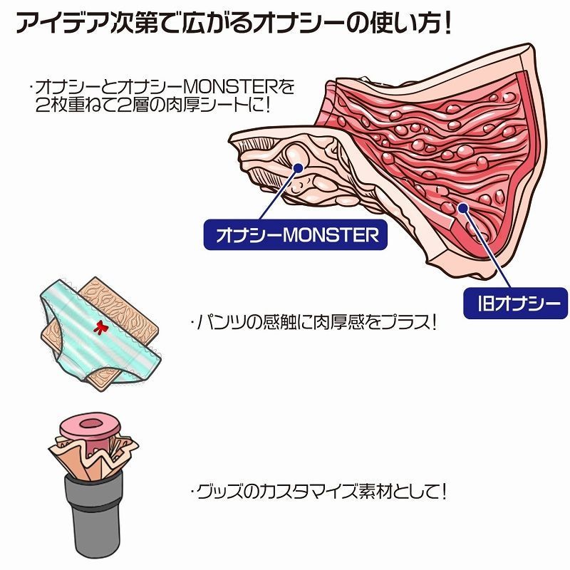 爆発的ヒットホール「ぐちょ濡れ名器MONSTER G」が、オナニー用シート「オナシー」になりました!あの複雑に絡む外側の生体表皮をモチーフに、弾力のある無臭の極上スキンに仕上げました。