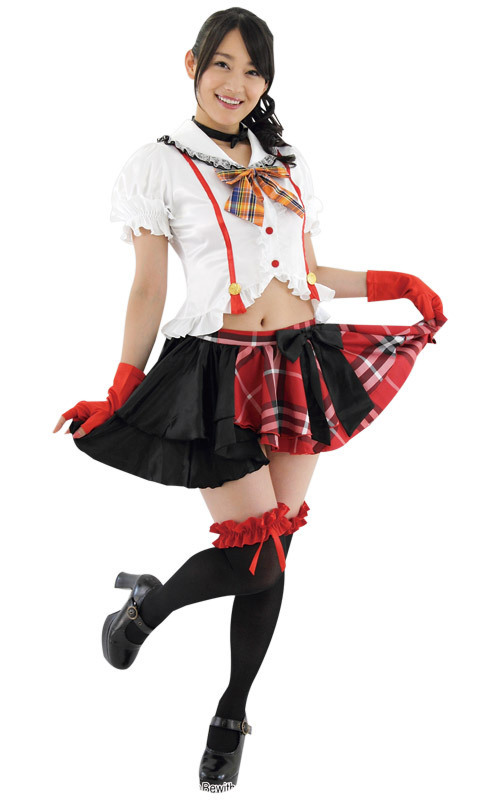 ブラウスはたっぷりフリルで仕上げた乙女なデザイン!胸元リボンとスカートにチェック柄をプラスしたワザありコスチュームです。