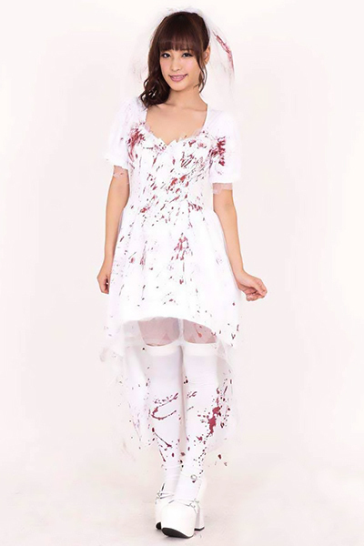 ハロウィンパーティーの主役間違いなし!鮮血が映える純白のウエディングドレス。