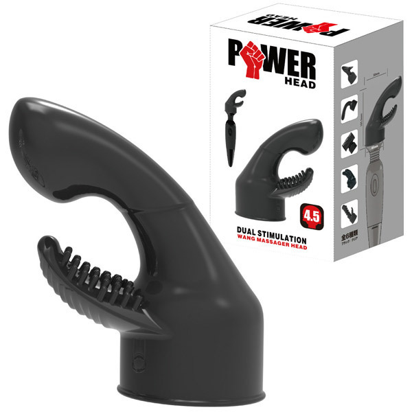 ●ヘッド径4.5〜5.2cmの電マに取付可能●肌に優しい柔軟エラストマー製●前のめり形状の二か所責めボディ●奥を絶妙に刺激するぷっくり先端●クリトリスに当たるブラシ型突起●ダークな雰囲気のブラック単色。