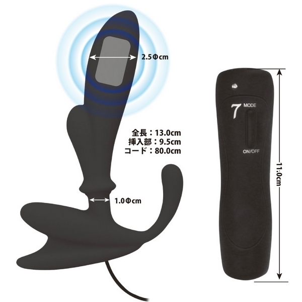 パッケージ:22.0×14.0×3.0cm 本体:全長13.0cm 挿入部分9.5×2.5φcm コード長80cm 電池:単四電池×3本使用