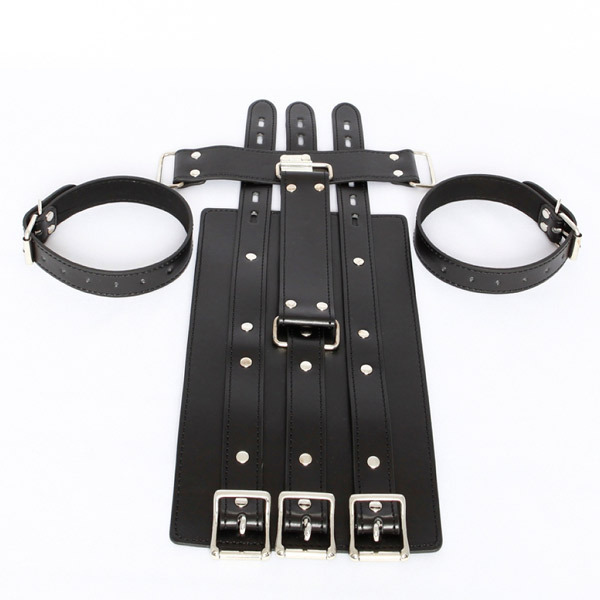 高級感のある合皮の幅広ベルトで腕を背面に固定!腕と手首を完全に抑制するフェイクレザー製の拘束具のため、陵辱感もプラスされ、SMプレイをさらに楽しませてくれるSMグッズです。