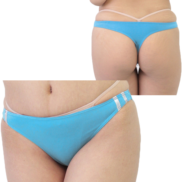 鮮やかなブルーが可愛い♪伸縮性抜群のストレッチ生地を使用した日本製ブルマ風Tバック(青)。