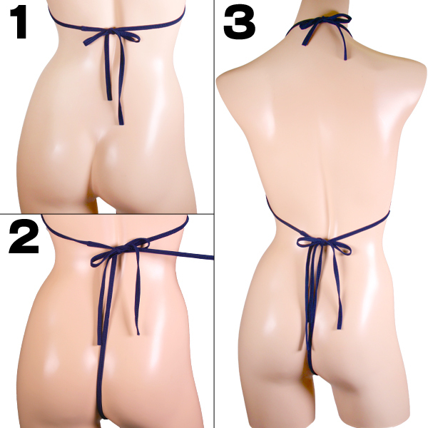 清純さをイメージしたネイビー使いと、ギリギリまで露出させる過激デザインで官能的に魅せつけるセクシーテディ♪サイズは後ろで結んで調整してください。