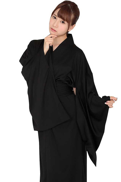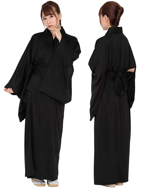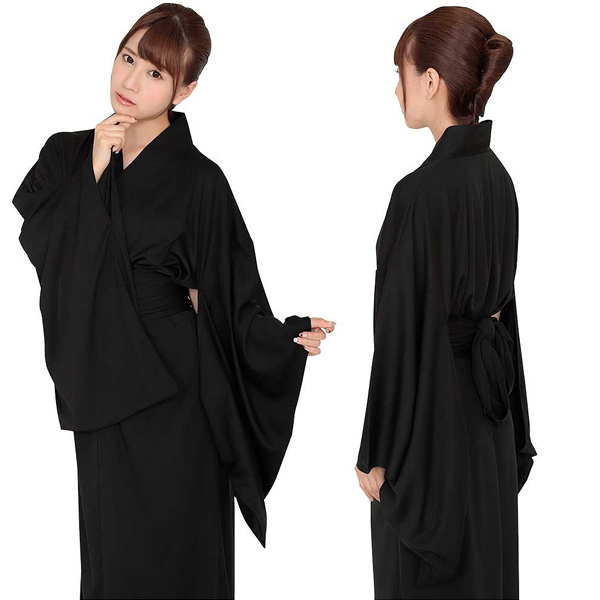 黒の着物と同色の帯紐のセット!ハロウィン仮装にも最適な着物コスプレ。