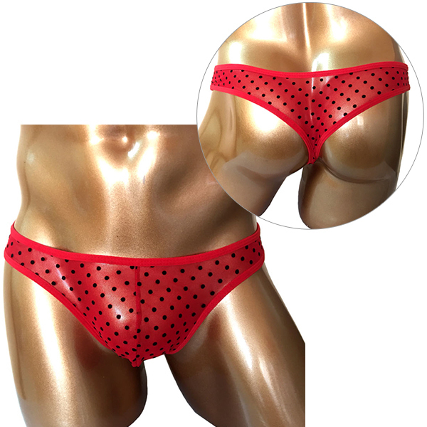 他とは差をつけたいメンズアイテムならコチラ!バッドダディブランドから情熱的な赤いシースルー生地のワイルドビキニパンツが新登場♪すいかの種のような水玉ドットがキュートさを演出します。