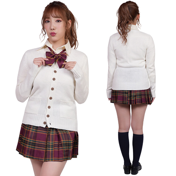 強気なスカートのカラーに甘いホワイトのセーターを組み合わせた鬼可愛制服。