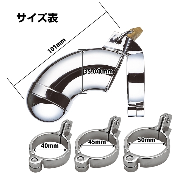 金属パイプタイプの男性用貞操帯の固定リングが3種類に増えて再登場!勃起は無論、不可能!日常的に着用し射精を管理する事も可能です。