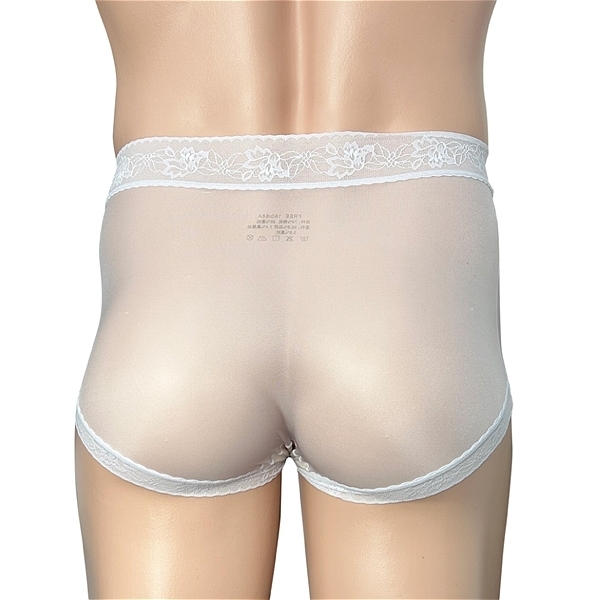 すべすべとしたシースルー素材がボディラインを美しく魅せ、貫通型ポールが男の象徴を引き立てるメンズショーツ。