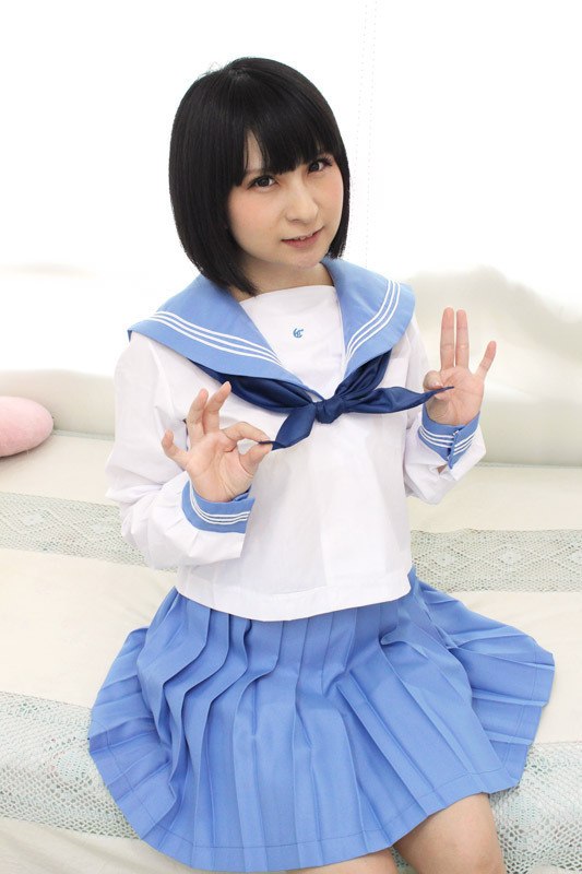 鮮やかなブルーのスカーフがアクセントになった珍しい水色セーラー。