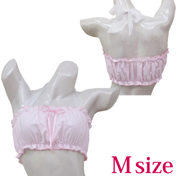 ピンクとホワイトのスウィートカラーで女の子らしさ急上昇!まるでプリンセスのナイティのようなヒラヒラ感で、お揃いショーツ(cm1002)とあわせればコスチュームの見せインナーとしても活躍してくれそうです。
