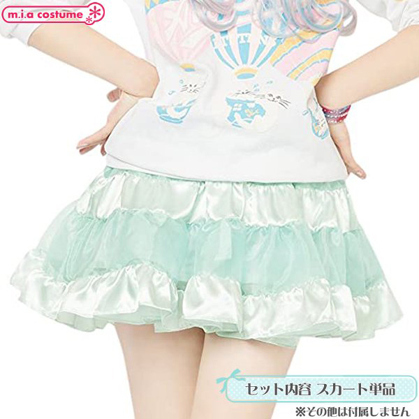 イベント用衣装やパーティーコスプレとしても良さげ♪原宿系カリスマモデル「AMO」がプロデュースする新ブランド「LUNATICLEMONYLOLLIPOP」からティアードスカート(ベビーブルー)が登場!サテンの光沢感とシースルー素材の組み合わせが可愛くて、重ねるボトムスで様々なコーディネイトが楽しめる逸品です。