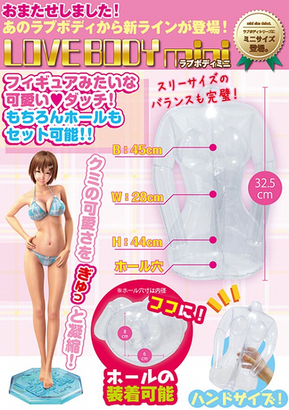 絶大な人気を誇るエアーダッチLOVEBODYシリーズから、コンパクトな「mini」が登場!全長32.5cmとサイズはコンパクトでも、ラブボディのクオリティはそのまま!美しいkumiのスリーサイズバランスを、ぎゅっと凝縮したパーフェクトボディです。