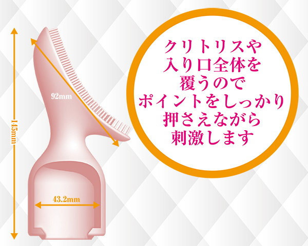 外イキ派ガールはもちろん、男性から女性へのクリトリス責めにも有効!ひしめくように隙間なく配置されたブラシ突起が、女性器に覆いかぶさるように包み込んで刺激する電マカバー。