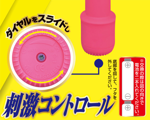 生活防水仕様で丸洗い可能!振動は初心者でも簡単なスライド式無段階調整◎単三電池を2本使用、ピンク