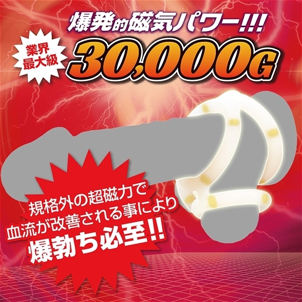 このメガマックス4は30.000ガウスのモンスターリングです!しかもこのガウスを竿、タマ、根本と4つのリングで完全固定し、爆発的なパワーで立ち上げ!!全てのリングに磁石が入っており、男根全体がみなぎるパワーを受けることに!しかもリングの締め付けも相まって、最高磁力、締め付け=爆立ち!!最高の結果へ導くスペシャルなリングなのです!言うまでもなく業界最大の磁力を実現。