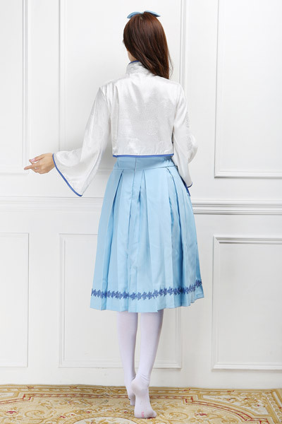 ハロウィンやコスプレイベントには白×青の清楚系な中華風ロリータで!歌うバーチャルアイドルの衣装をモチーフにしたコスチューム♪チャイナ服を彷彿とさせるデザインとツヤっとした白い生地のトップスに、サックスブルーのスカートとリボンがセットになった衣装。
