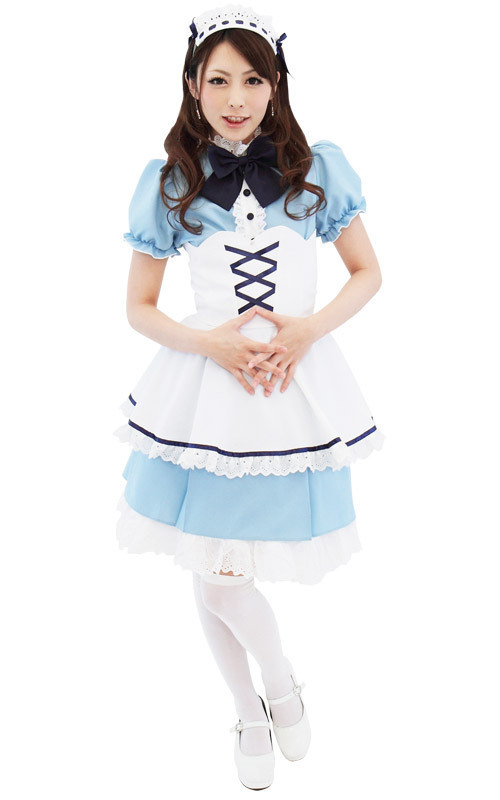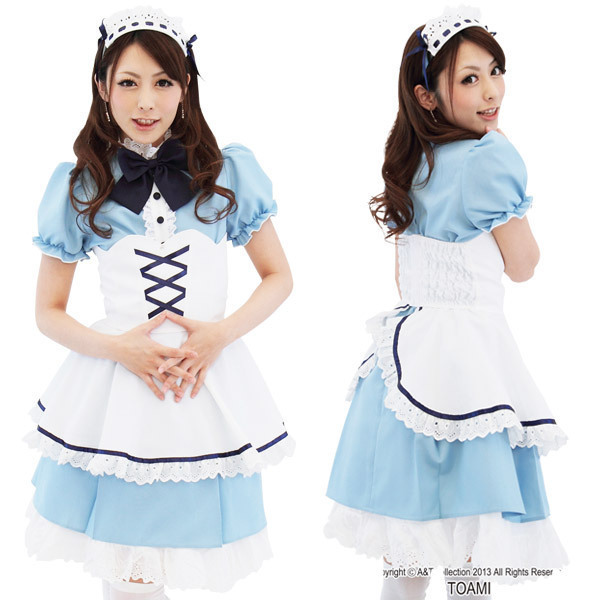 清楚な雰囲気たっぷり!サックスブルーが目に鮮やかなメイドコスプレ衣装。