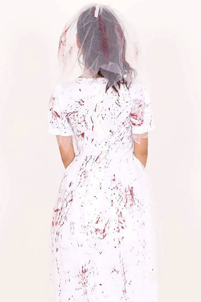 ハロウィンパーティーの主役間違いなし!鮮血が映える純白のウエディングドレス。