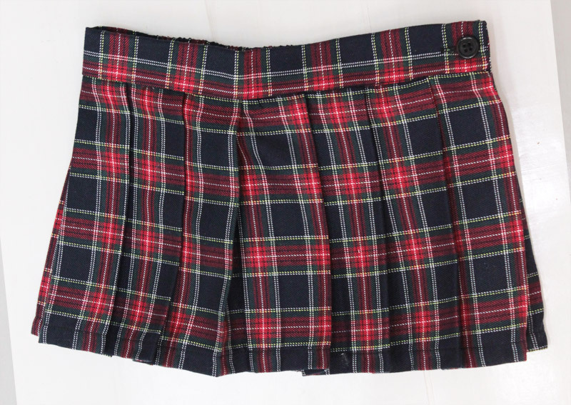 本格的!紺と赤のチェックが可愛いプリーツスカート(M)。