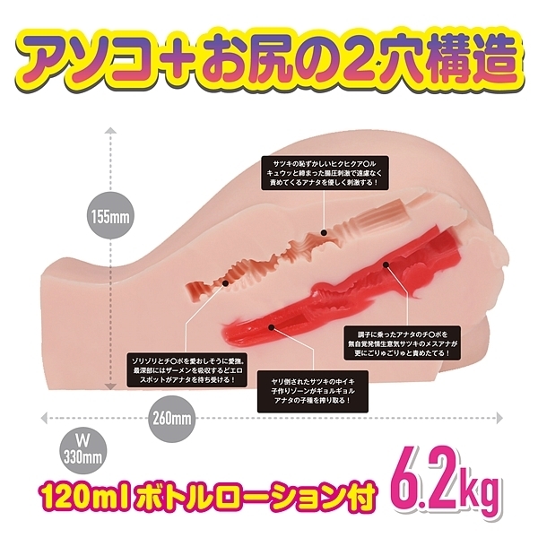 女友達をメスにする6.2kg!!メスダチデカ尻ホール今回は更に柔らかプルルンッ?ソフトバージョンで登場!〜ヤリ部屋で濃厚巣ごもり交尾〜エロカワでメスいボーイッシュ女子と更なる生交尾!・リアル追及!マジ肌採用・アソコ&おしりの2穴構造!・サツキのパンティ付・120ml ボトルローション付
