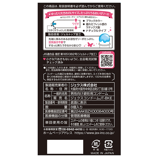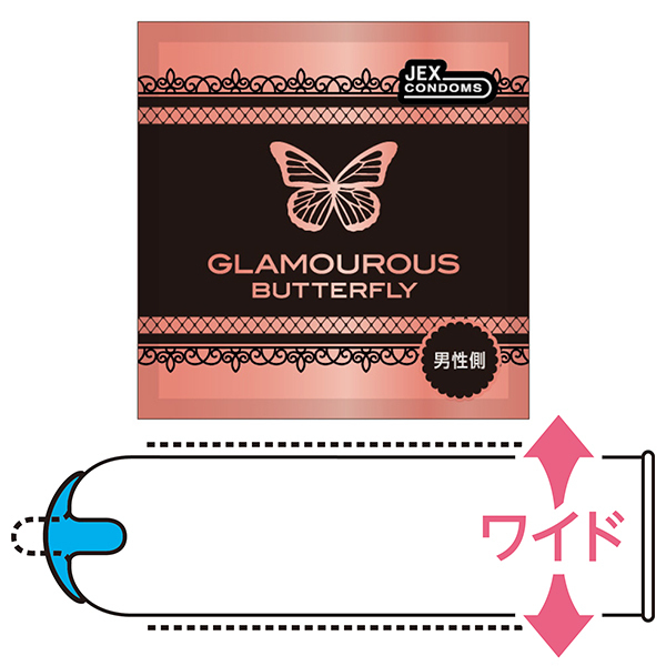人気の「グラマラスバタフライ」シリーズに、ゆったりサイズが登場!大きめの方に最適なLサイズのコンドーム(8個入)。