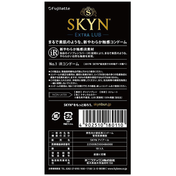 高品質な避妊具をお探しの方に!潤滑ゼリーをたっぷり配合したSKYN新作「エクストラリューブ」10個入り。