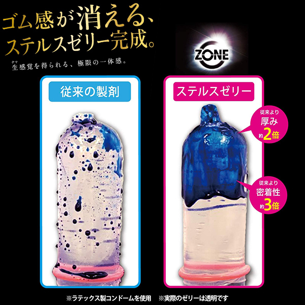 ゴムの装着感を限りなく0に近づける独自開発のステルスゼリー!●ステルスコート:コンドーム使用時の違和感を解消する独自のゼリー技術●優れたフィット感のラテックス製●ナチュラルタイプ●ブラックカラー●大きめのLサイズ