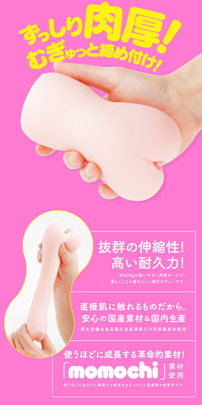 ●肉感重視のトルソーボディ●むぎゅっと締め付けるずっしり400g●使う毎に覚醒する「momochi」素材●優れた伸縮性で耐久力も抜群●ぷっくりすじマン&広めの挿入口●内部構造は肉イボのオンパレード●安心の国産素材&国内製造●パッケージ:すめらぎ琥珀。