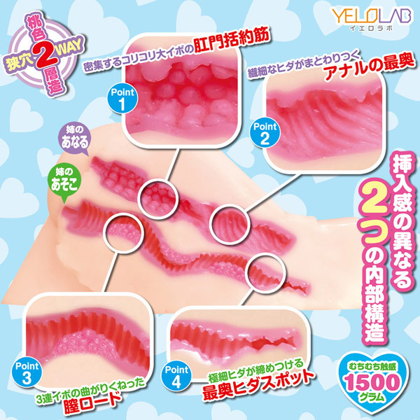 重量1500gで取り扱いやすい中型サイズのボディは外側と内側で弾力と肌触りの違う2WAY幼熟2層構造を採用し、異なる挿入感を実現。