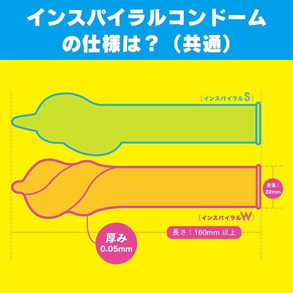 人間工学に基づく新感覚のコンドーム、インスパイラルSの先端をW(ダブル)のスパイラル形状に進化させた「インスパイラルW」がパッケージリニューアル!違和感がなく装着でき、男性だけじゃなく女性側も気持ちよくなれる新感覚のコンドームです。