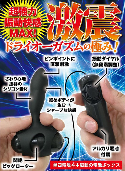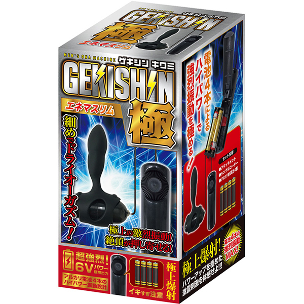 激震が走る快感!振動を極めた絶頂メンズローター!一般的なローターと異なる、電池四本駆動による6Vパワーの超強烈振動を実現させた「GEKISHIN 極」シリーズより、エネマボディを搭載したメンズローターが新登場!エネマボディは、さわり心地抜群のシリコン素材。