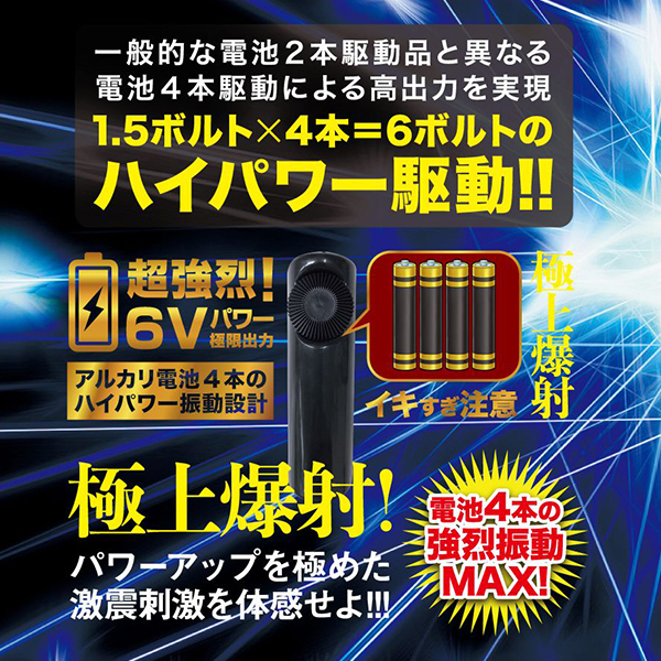 この細さがアナタを虜にさせるはず!さらに、ハイパワーを加速させるアルカリ電池付き!パワーアップを極めた激震刺激を体感せよ!