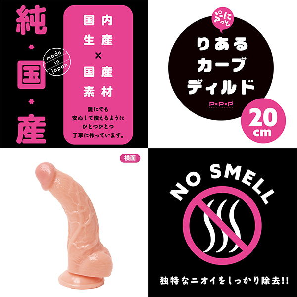 生々しい色味や細部の造形に上反りの逞しさ!滾るフォルムがギンギンな若いイチモツを想起させる「純国産ぷにっと(りあるカーブディルド 20cm)」です♪国内生産×国産素材にこだわったディルドで誰にでも安心して使えるようにひとつひとつ丁寧に作られています!プニュっとした握り心地にピンク色の亀頭、サオからタマにかけては人肌色で迸る血管とカリの造形♪視覚的にも楽しめて、挿入長20cmの長さが心地よい刺激を生み出してくれます。