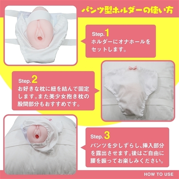 腰振りオナニーができる!!付属のパンツ型ホルダーでお好きな抱き枕やまくらにオナホールを固定して正常位みたいに腰振ってお楽しみいただけます。