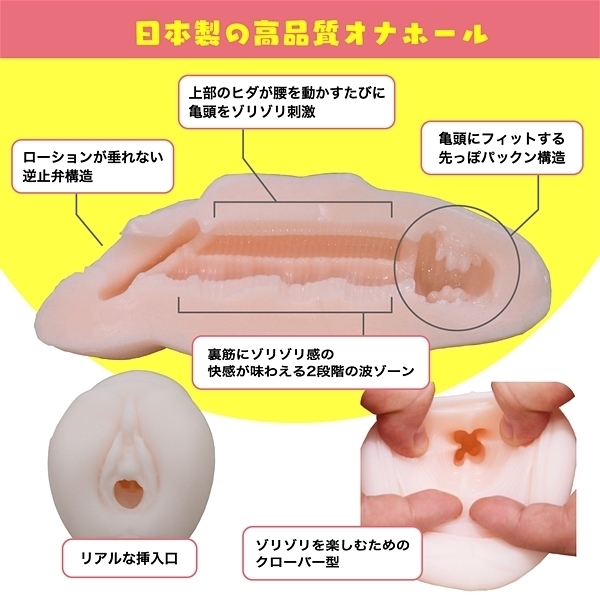 オナホール本体も腰振りオナニーに合わせてキツ過ぎず緩過ぎず、ある程度腰振りを楽しんだら好きなタイミングで射●できるような設計になっています。
